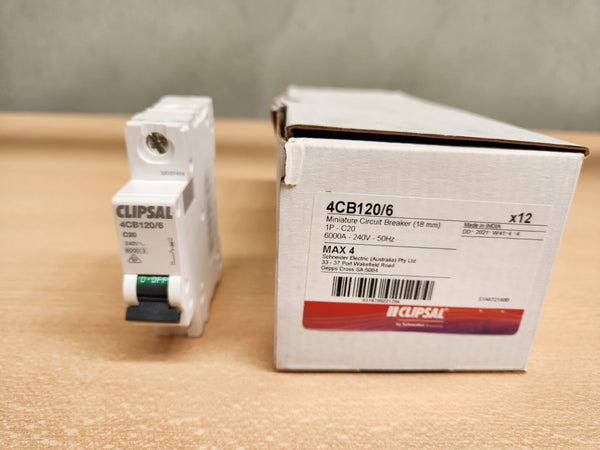 Clipsal 4CB120/6 - Mcb 6Ka 20A 1 Pole 240V Ac C-Curve 1 Module Din Rail Mounting 4 Series   -Brand new item, still in OEM packaging  -Check out the images for more product details   Product details MCB 6KA 20A...View more