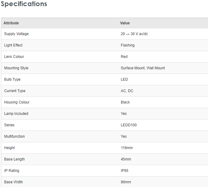 Moflash LEDD100-02-02 LED, Flashing Beacon LEDD100 Series, Red, Surface Mount, Wall Mount, 20 → 30 V ac/dc - Brand new item, still in OEM packaging  - Check out the images for more product details Product details The LEDD100 economy series...View more