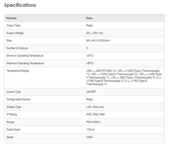 P.M.A KS40 PID Temperature Controller, 96 x 48 (1/8 DIN)mm, 3 Output Relay, 90 → 250 V ac Supply Voltage ON/OFF-New - Brand new item, still in OEM packaging  - Check out the images for more product details Product details:...View more