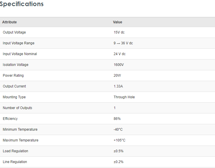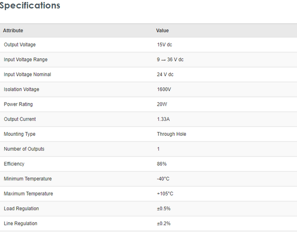 Recom RP20 FW 20W Isolated DC-DC Converter Through Hole, Vin 9 → 36 V dc, Vout 15V dc, I/O isolation 1.6kV - Brand new item, still in OEM packaging  - Check out the images for more product details Product details...View more