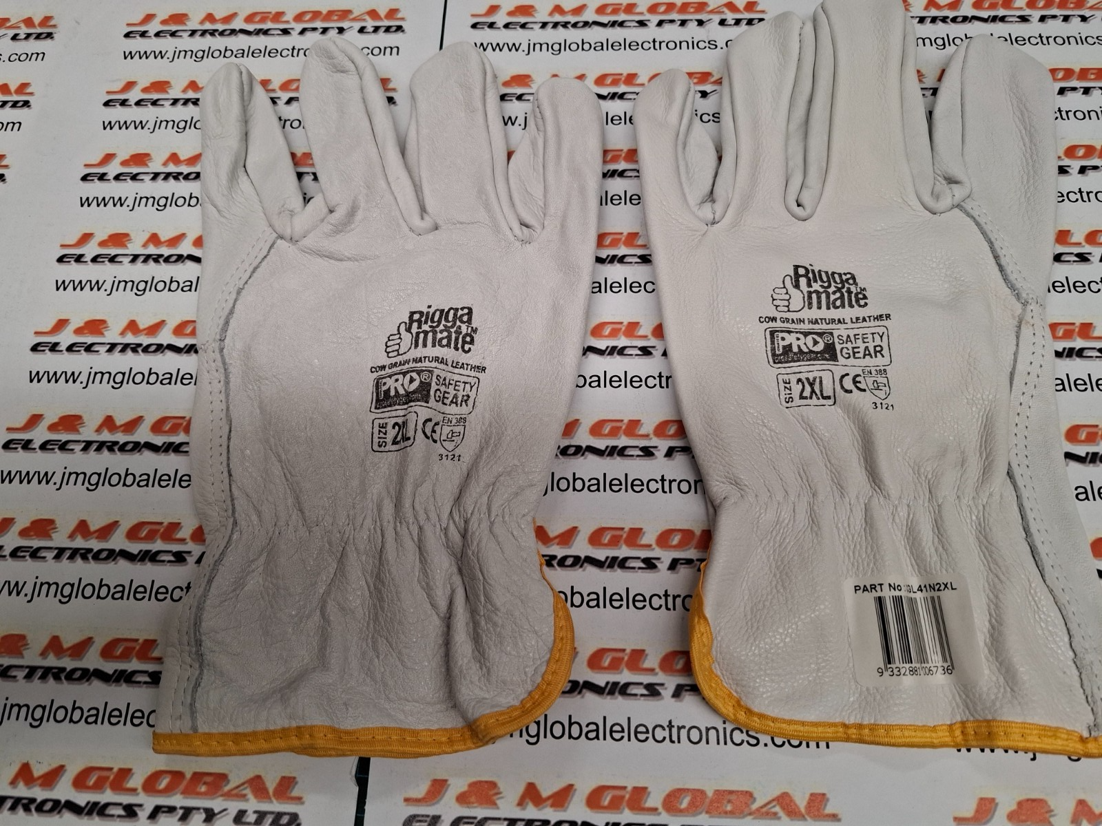 Riggamate CGL41N Rigger Gloves - Size 2XL- White -  LeatherLeather rigging gloves for heavy-duty hand protection in the rigging, mining and construction industries Natural cow grain leather rigging gloves for excellent durability and comfort EN3008 Level 3 abrasion resistance Wing...View more