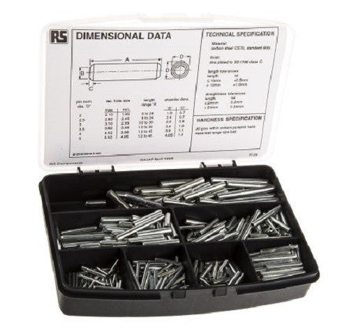RS Pro J6197PINKIT 600 piece Galvanised Steel Metric Spring Tension Pin Kit - Brand new item, still in OEM packaging  - Check out the images for more product details Product details A 600-piece kit of Metric size spiral wrapped pins,...View more