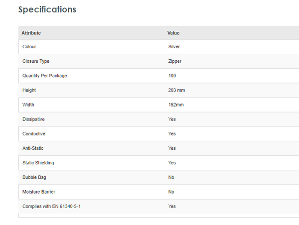 RS PRO 9269060809 Silver Anti-Static Zipper Anti-Static Bag - Brand new item, still in OEM packaging  - Check out the images for more product details Product details Shielding bags are designed to protect ESD sensitive components and assemblies from all...View more