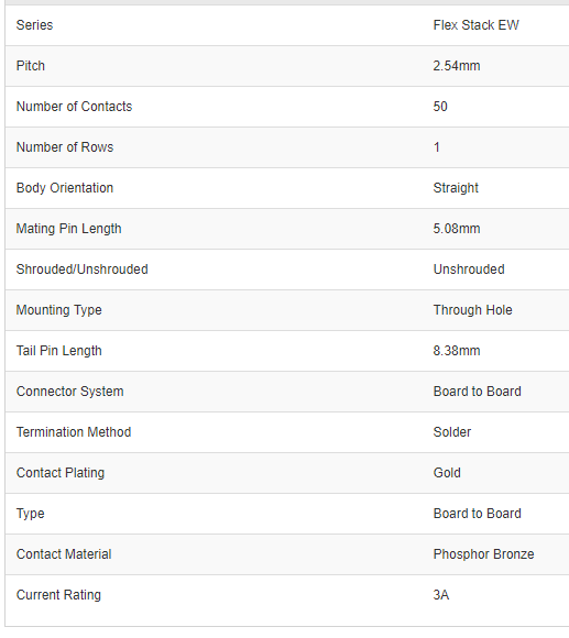 Samtec EW5012LS500 Flex Stack EW, 2.54mm Pitch, 50 Way, 1 Row, Straight Pin Header, Through Hole (1 Bag of 4) - Brand new item, still in OEM packaging  - Check out the images for more product details Product details Single...View more