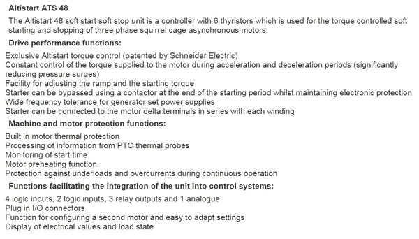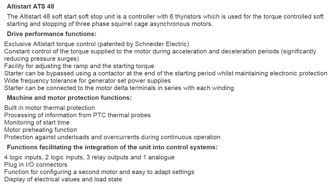 Schneider Electric 22 A Soft Starter ATS48 Series IP20 11 kW 2 - ATS48D22Q - Brand New, unused, still in OEM packaging - Check out the images for more product details Product details: See specifications in Images above Manufacturer: Schneider...View more