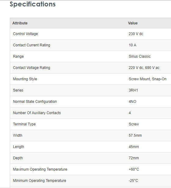 Siemens Overload Relay 4NO, 10 A, 230 V DC - 3RH1140-1BP40