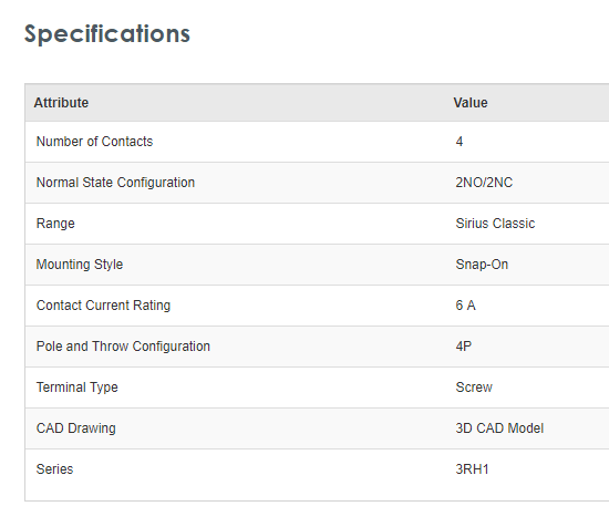 Siemens 3RH19111FC22 Snap-On Auxiliary Contact with Screw Terminal, 2NO/2NC, 6 A - Brand new item, still in OEM packaging  - Check out the images for more product details Product details Siemens range of auxiliary contact bloacks to suit the 3RH...View more