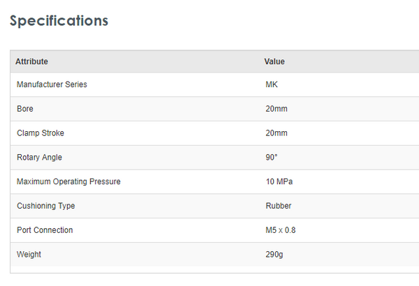 SMC MKB20-20RZ Clamping Actuator - Brand new item, still in OEM packaging  - Check out the images for more product details Product details Double-acting rotary clamp actuators, operating on lubricated, filtered compressed air. The piston rod is rotated through 90°...View more