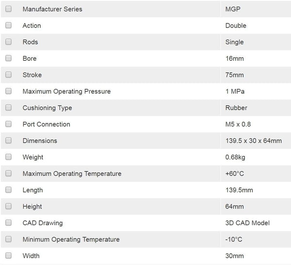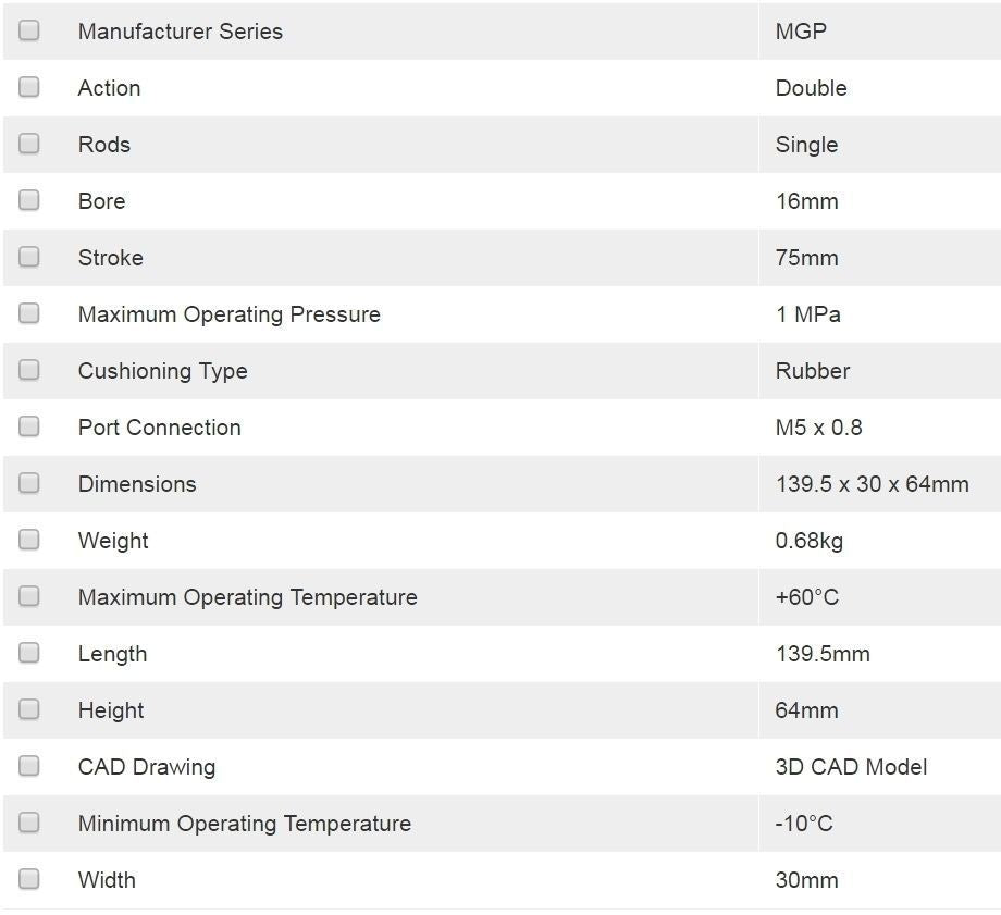 SMC Pneumatic Guided Cylinder MGPM16-75 - Brand New in Box - Fast Shipping