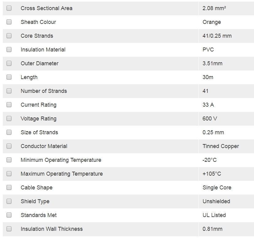 Alpha Wire Orange Hook Up Wire, 2.08 mm² CSA  600 V 33 A 30m- New in Box -Brand New, unused, still in OEM packaging -Check out the images for more product details Product details Manufacturer: Alpha Wire Manufacturer Part Number:...View more