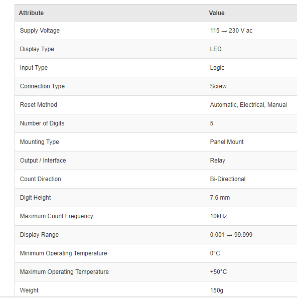 Baumer XM-D2/RS 5 Digit LED Digital Counter, 10kHz, 115-230V AC, SPCO Relay