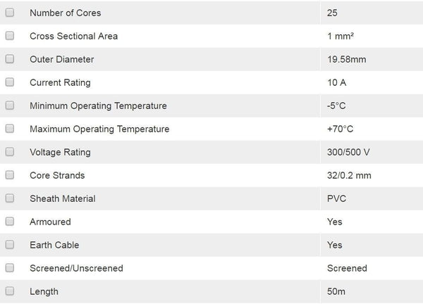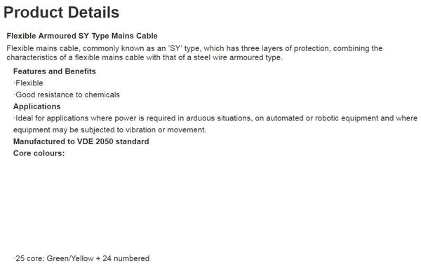 Belden SY Control Cable 25 Core Screened PVC Sheath (50 Metre Reel) - SYSC25.0050                             Brand New, Unused, and in OEM Packaging Product Highlights Manufacturer: Belden Part...View more