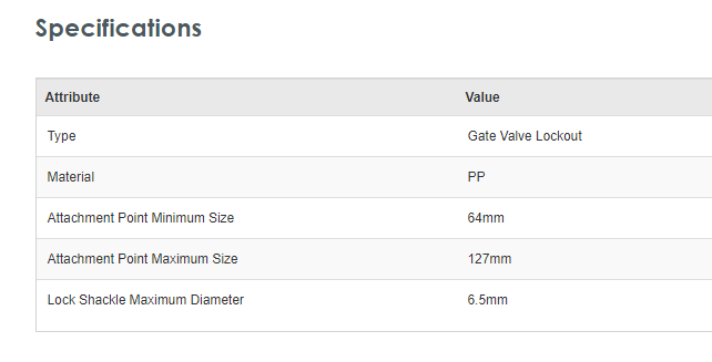 Brady 65561 6.5mm Shackle PP Gate Valve Lockout, 127mm Attachment Point - Brand new item, still in OEM packaging  - Check out the images for more product details Product details Gate Valve Lockouts Manufactured from durable, non-adherent plastic.,Safe and easy...View more