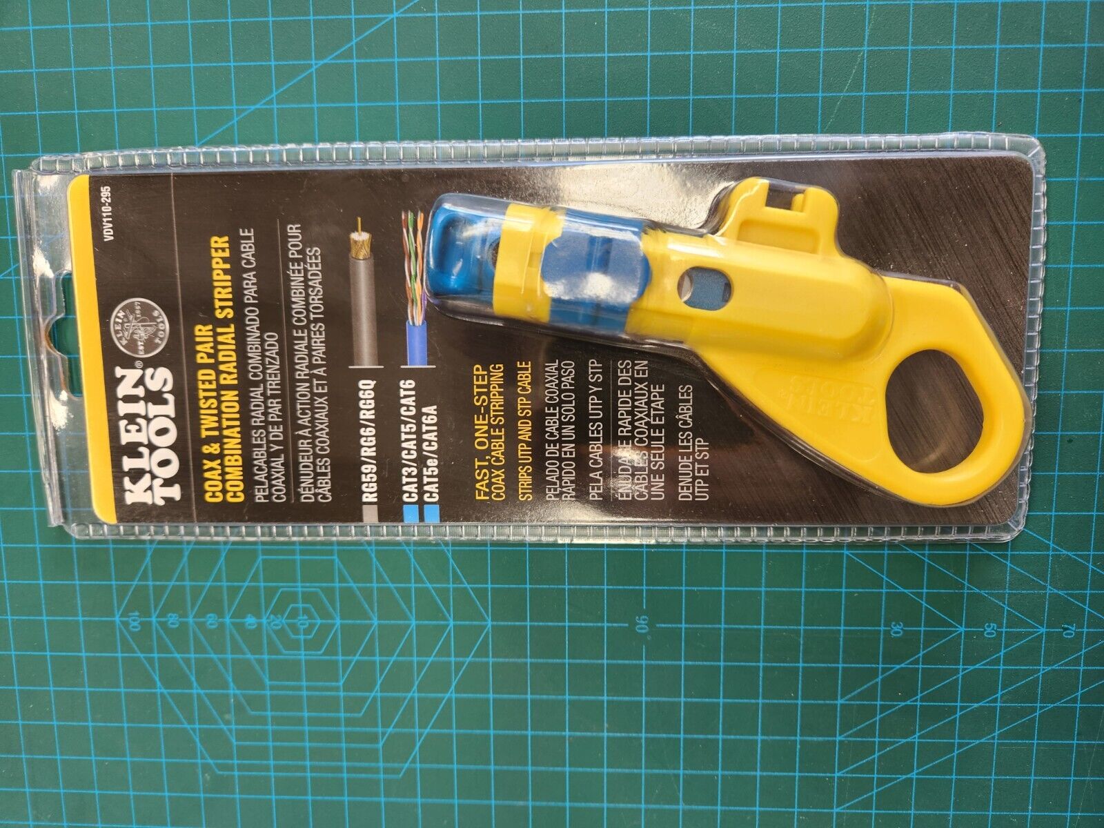 COAX & TWISTED PAIR STRIPPER 59/6/6QS CAT3/5/6/6A - KLEIN TOOLS - VDV110-295PRODUCT DETAILS: Easily and cleanly strips both coaxial and twisted-pair cable including RG59, RG6/6Q, CAT3, CAT5 and CAT6 sizes Precision high-carbon steel blades automatically adjust to twisted pair cable...View more
