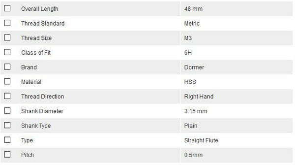 Dormer E500-M3/0,50 HSS M3 Straight Flute Thread Tap, 48 mm Length - New - Brand new item, still in OEM packaging  - Check out the images for more product details Product details:- - E500 HSS metric straight flute plug taps-...View more