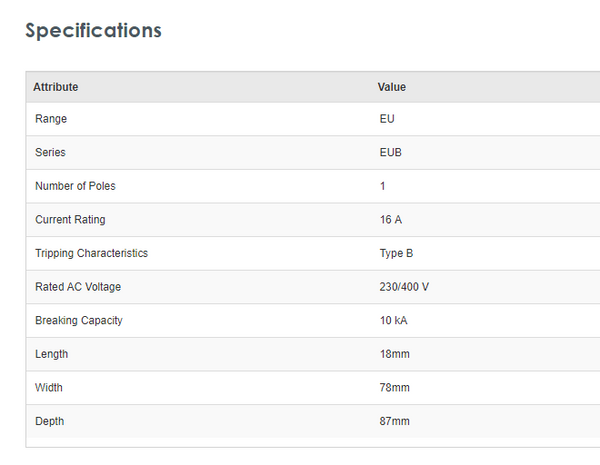 EUROPA EUC1P16B EUB MCB Mini Circuit Breaker 1P, 16 A, 10 kA, Curve B - Brand new item, still in OEM packaging  - Check out the images for more product details Product details This range of MCB's are suitable for...View more
