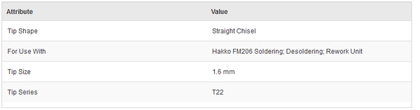 Hakko 1.6mm Straight Chisel Soldering Iron Tip - T22-D16