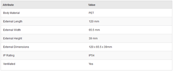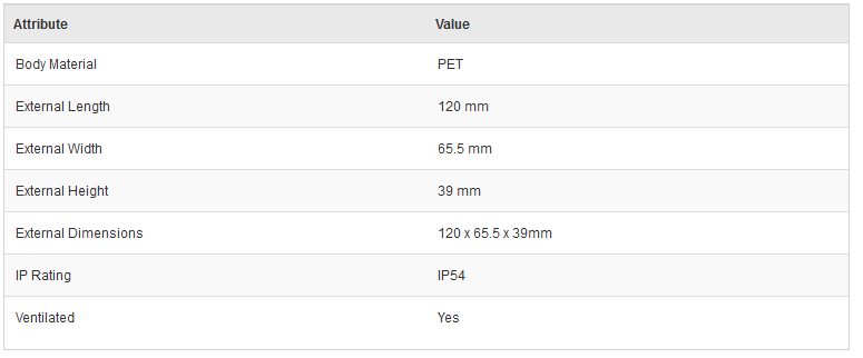 Hammond PET Instrument Case, 120 x 65.5 x 39mm - 1590N