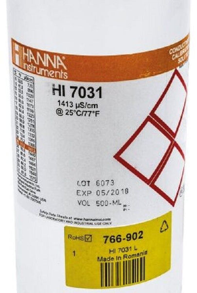 Hanna Instruments HI7031 Water Analysis Calibration Solution 1413μS/cm, 460ml Bottle- EXPIRY DATE: JUNE 2020- AWESOME PRICE- 460ml ***A BOTTLE OF CALIBRATION SOLUTION FOR USE WITH A CONDUCTIVITY TESTER*** - Brand new item, still in OEM packaging  - Check out the...View more