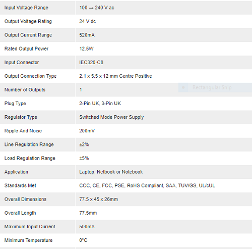 I.T.E. POWER SUPPLY - SAW12.5-24.00-0520 12.5W Desktop Power Supply 100 - 240 V ac, 24V dc 520mA - (2 PIN UK PLUG) -Brand new item, still in OEM packaging  -Check out the images for more product details Product details: Single...View more
