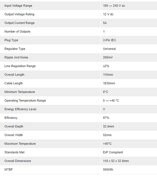 Ideal Power 25HK-AH-120A500-DH Desktop Power Supply, 2-Pin IEC, 100-240 V ac -Brand new item, still in OEM packaging  -Check out the images for more product details Product details: 40W to 60W Desktop Power Supply Ideal Power Series of 40W to...View more