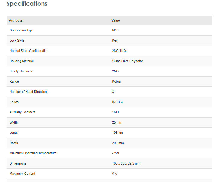 IDEM 223001 INCH-3 Safety Interlock Switch, Fibreglass, 2NC/1NO - Brand new item, still in OEM packaging  - Check out the images for more product details Product details The Kobra INCH series from IDEM are tongue operated safety interlock switches that...View more
