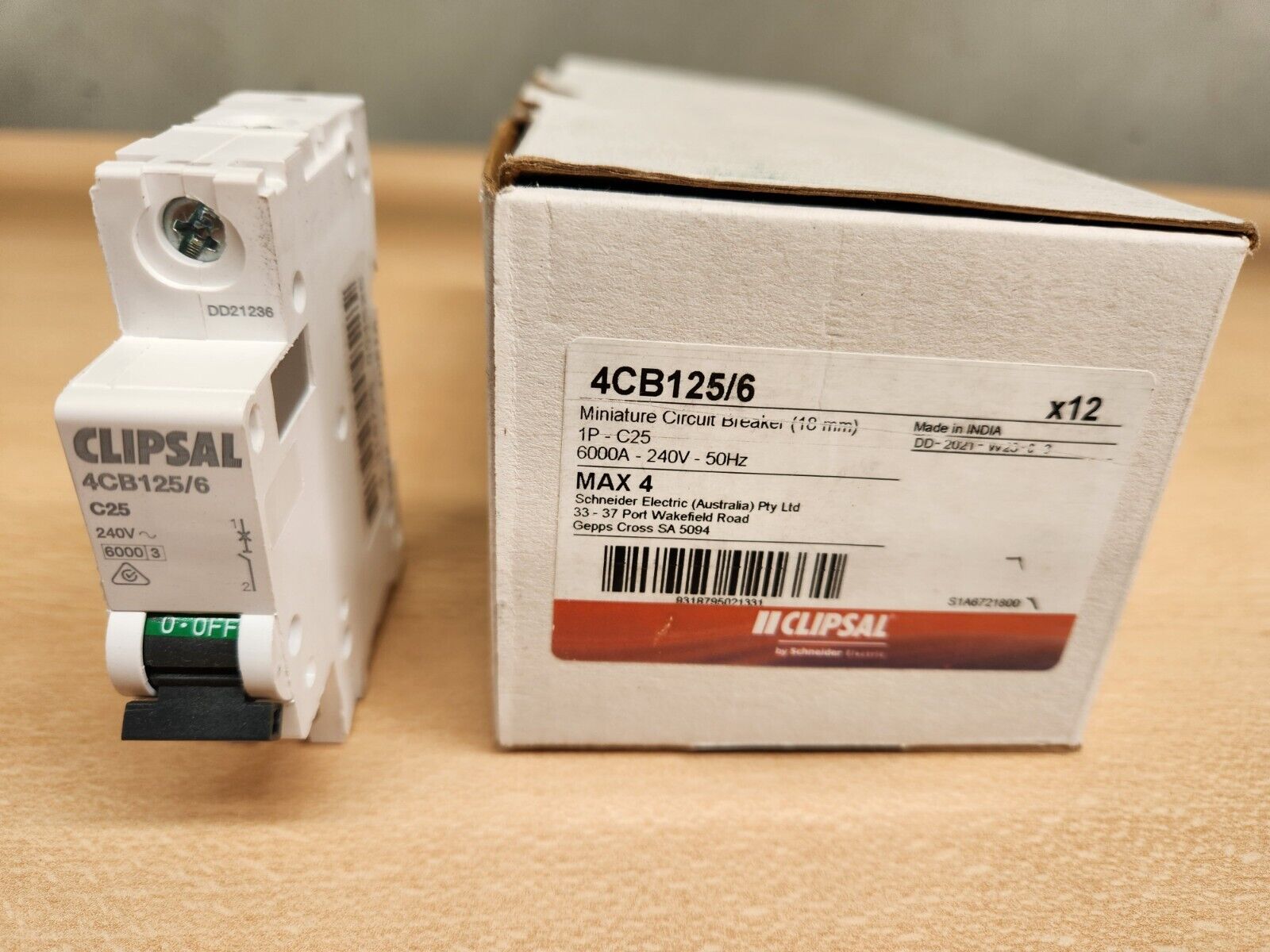 Clipsal 4CB125/6 - Mcb 6Ka 25A 1 Pole 240V Ac C-Curve 1 Module Din Rail Mounting 4 Series   -Brand new item, still in OEM packaging  -Check out the images for more product details   Product details MCB 6KA 25A...View more