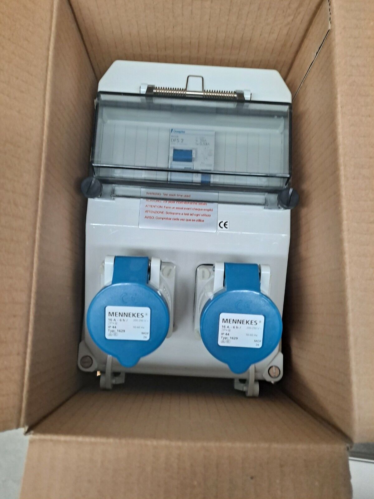 Mennekes 920417 Blue DIN Rail Mount 2P+E RCD Industrial Power Connector Socket -Brand new item, still in OEM packaging  -Check out the images for more product details Product details: Mennekes AMAXX Receptacle Combination- Mennekes AMAXX receptacle combinations are available in...View more