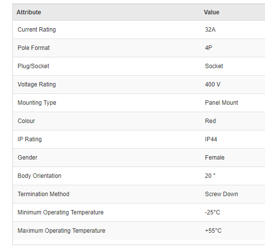 Mennekes 1496 IP44 Red Panel Mount 4P 20° Industrial Power Socket, Rated At 32A, 400 V - Brand new item, still in OEM packaging  - Check out the images for more product details Product details The angled nature of these...View more