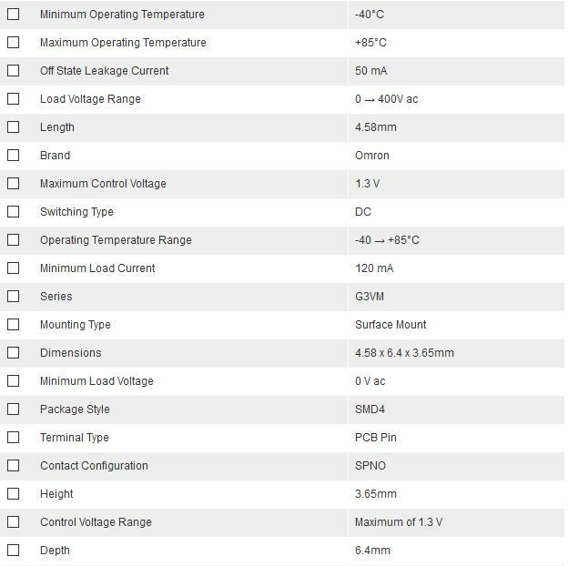 Omron 0.12 A SPNO Solid State Relay DC MOSFET 400 V AC - G3VM-401D