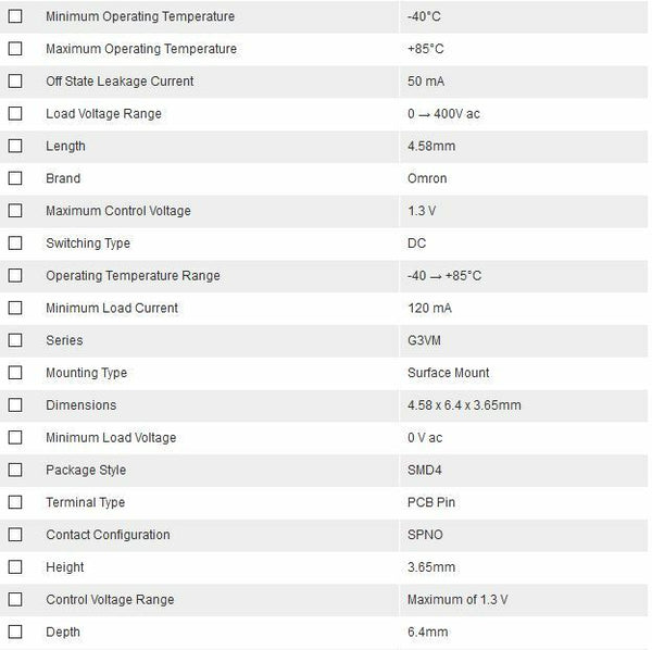 Omron G3VM-401D 0.12 A SPNO Solid State Relay, DC, Surface Mount, MOSFET, 400 V ac Maximum Load - New - Brand new item, still in OEM packaging  - Check out the images for more product details Product details:- - G3VM...View more