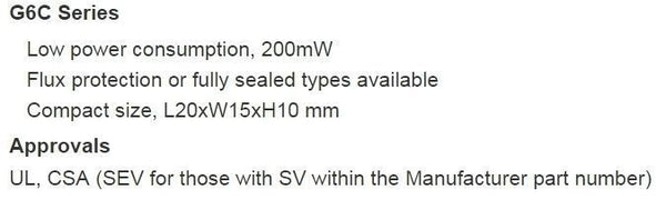 Omron Relay G6C-2114P-US-SV-12DC SPST-NONC seal UL/CSA/SEV 8A 12VDC