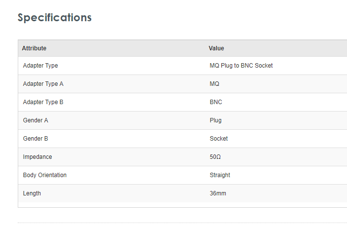 RADIALL R191413000 Straight 50Ω RF Adapter MQ Plug to BNC Socket - Brand new item, still in OEM packaging  - Check out the images for more product details Product details BNC / mini-QUICK adaptors ref.   Radiall type R191 413...View more