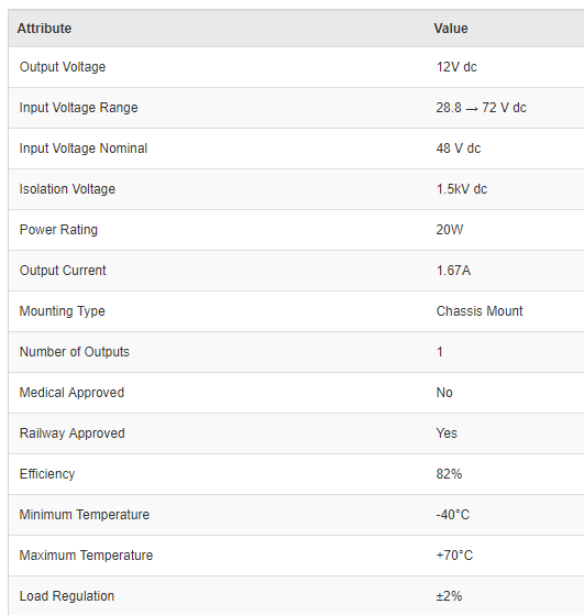 Relec Electronics Corp., RA-4812-20W-B Isolated DC-DC Converter Chassis Mount, Vin 28.8 → 72 V dc, Vout 12V dc Railway Approved - Brand new item, still in OEM packaging  - Check out the images for more product details Product details The...View more