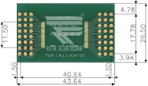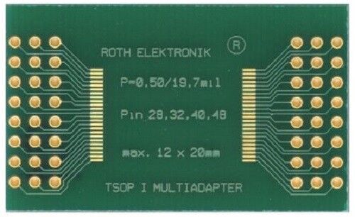 Roth Elektronik RE900-02 Surface Mount (SMT) Board TSOP I Epoxy Glass Double-Sided 43.5 x 30.5 x 1.5mm FR4 - Brand new item, still in OEM packaging  - Check out the images for more product details Product details TSOP I/II Adaptor...View more