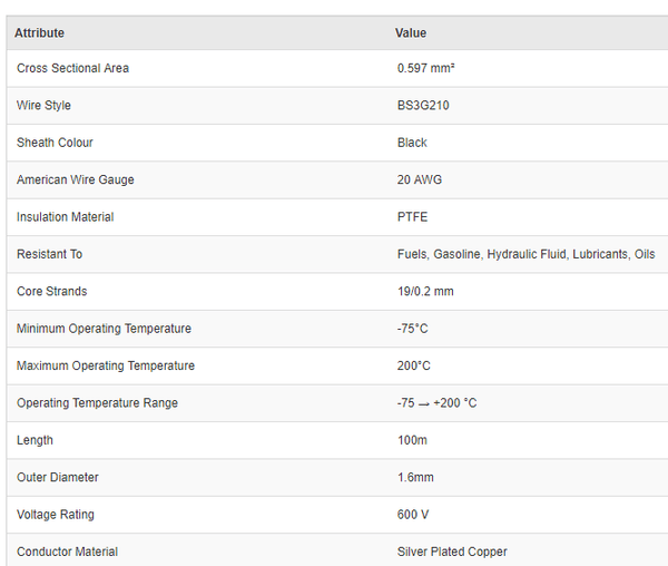 RS Pro B-19-20-BLA 0.597 mm² PTFE Equipment Wire 100m, 600 V, Silver Plated Copper 19 Strands BS 3G 210:1996 (1 Reel of 100 Metre) - Brand new item, still in OEM packaging  - Check out the images for more product...View more