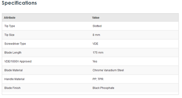 RS Pro 252-826 Slotted VDE Screwdriver 8 mm Tip 175 mm Chrome Vanadium Steel VDE/1000V Approved - New - Brand new item, still in OEM packaging  - Check out the images for more product details Product details:- RS Pro Screwdriver,...View more