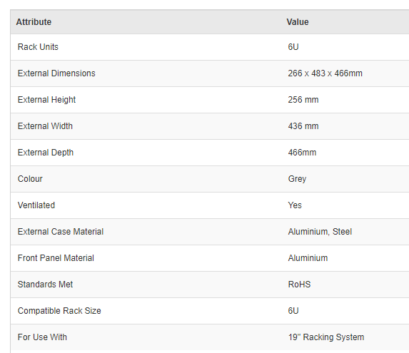 RS Pro RSHD6U466 Ventilated Heavy Duty Rack Mount Case, 6U, 266 x 483 x 466mm - Brand new item, still in OEM packaging  - Check out the images for more product details Product details 423 mm wide x 466 mm...View more