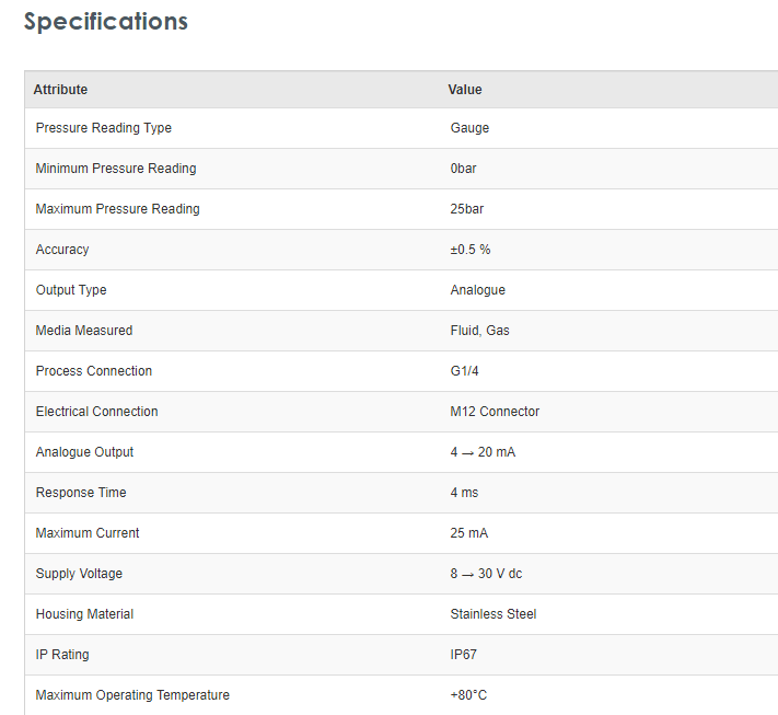 Sick PBT-RB025SG1SSNAMAOZ Gauge Pressure Sensor, 25bar Max Pressure Reading , 8 → 30 V dc, G1/4, IP67 - Brand new item, still in OEM packaging  - Check out the images for more product details Product details The PBT pressure transmitter...View more