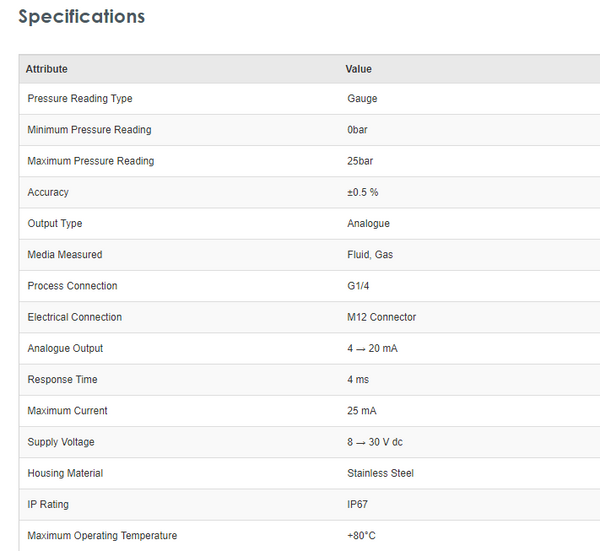 Sick Gauge Pressure Sensor, 25bar Max Pressure Reading - PBT-RB025SG1SSNAMAOZ