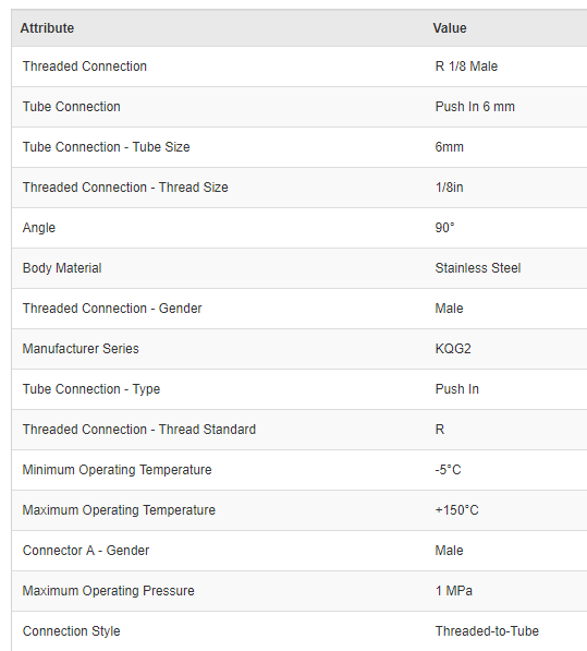 SMC KQG2L06-01S Pneumatic Elbow Threaded-to-Tube Adapter, R 1/8 Male, Push In 6 mm - Brand new item, still in OEM packaging  - Check out the images for more product details Product details SMC’s KQG2 stainless steel range provides engineers with...View more