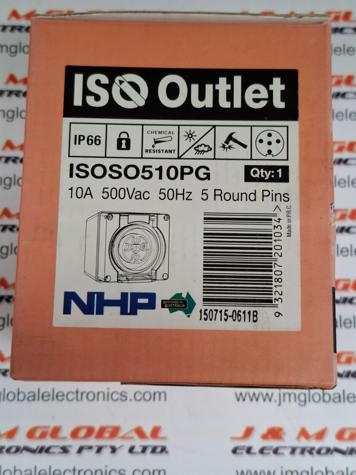 SOCKET OUTLET 3PHASE 5 PIN 10A - NHP ISOSO510PGPRODUCT DETAILS: NHP Socket outlet. High ingress protection of IP66. Suitable for most industrial and commercial applications. Designed and tested to AS/NZS 3112 and AS/NZS 3123 Industrial socket outlet Model ISO Degree...View more