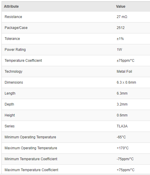 TE Connectivity Current Sensing Surface Mount Resistor(In a Pack of 5) TL3A R027