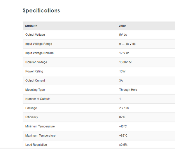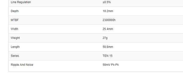TRACOPOWER TEN15-121 Isolated DC-DC Converter Through Hole, Vin 9 → 18 V dc, Vout 5V dc, I/O isolation 1.5kV dc - Brand new item, still in OEM packaging  - Check out the images for more product details Product details: 15W...View more
