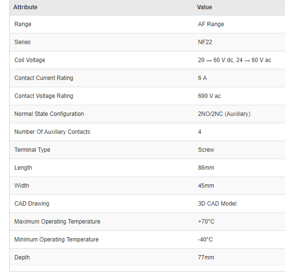 ABB AF Range Contactor (Auxiliary) - NF22E-11            Brand New in OEM Packaging Model: ABB NF22E-11 AF Range NF22 Contactor Type: 2NO/2NC (Auxiliary), 6 A, 20 → 60 V dc, 24 → 60 V ac Coil...View more