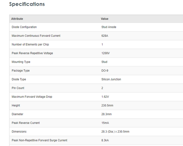 IXYS W0628RA120 Diode, Stud Anode, 1200V 628A, 2-Pin DO-9 - Brand new item, still in OEM packaging  - Check out the images for more product details Product details Rectifier Diodes Anode Stud, Ixys A range of high current stud-mounting rectifier...View more