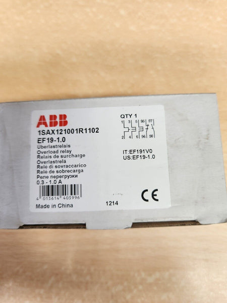 ABB EF19-1.0   /   1SAX121001R1102  Overload Relay 1NO + 1NC, 0.3 → 1 A F.L.C, 1 A Contact Rating, 54 W, 3P, AF Range Electronic Overload RelayPRODUCT DETAILS: Electronic overload relays are the alternative to the thermal overload relays; they offer reliable...View more