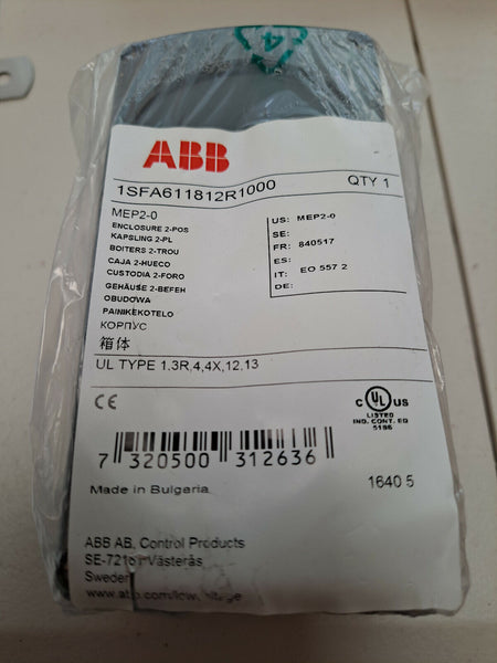 ABB MEP2-0-1SFA611812R1000 Enclosure 2-POS MEP2-0 - Plastic Enclosure - Brand new item, still in OEM packaging  - Check out the images for more product details Key features:• Accessory Type: Enclosure• Color: Grey• Degree of Protection: Front IP66                                        Housing IP66• Housing...View more