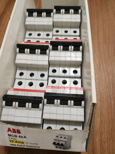 ABB SH203C10 MCB 6kA 3P 10A 400VAC C CURVE DOMESTIC- SH203C10PRODUCT DETAILS:The ABB Miniature Circuit Breaker is a 3-pole, 10A circuit breaker designed for load centre applications. It provides protection against short circuits and thermal overload with a C curve...View more