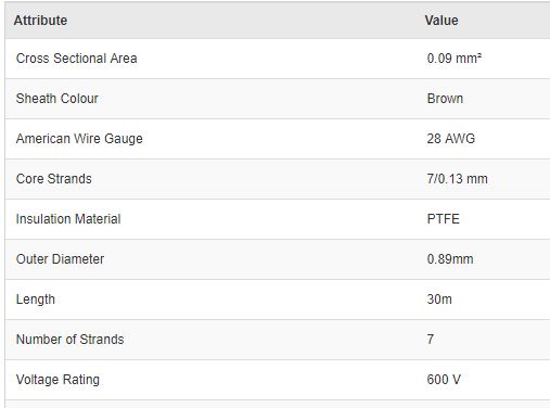 Alpha Wire 5852-BR005 Brown, 30m PTFE UL1213 PTFE Equipment Wire, 0.09 mm² CSA , 600 V 28 AWG (1 Reel of 30 Metre) - Brand new item, still in OEM packaging  - Check out the images for more product details...View more